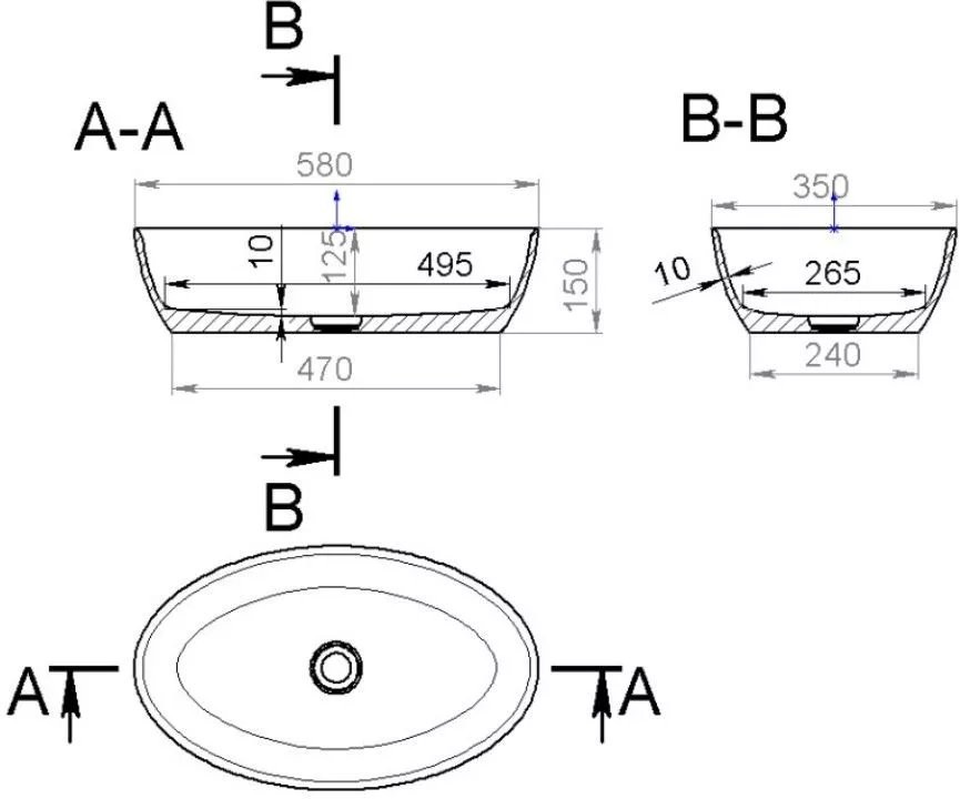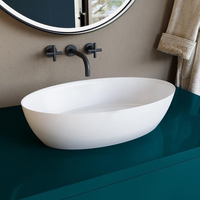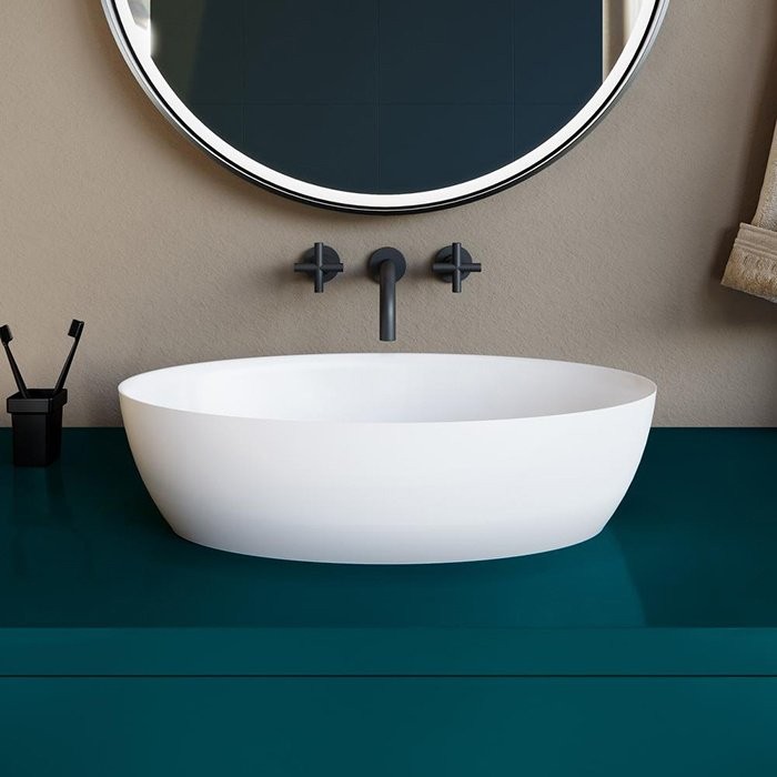 Умывальник накладной Salini ALDA 58x35 Solix матовый - Ширина: 58 см, Глубина: 35 см, Конструкция: На столешницу, Материал: Искусственный камень, Цвет: Белый