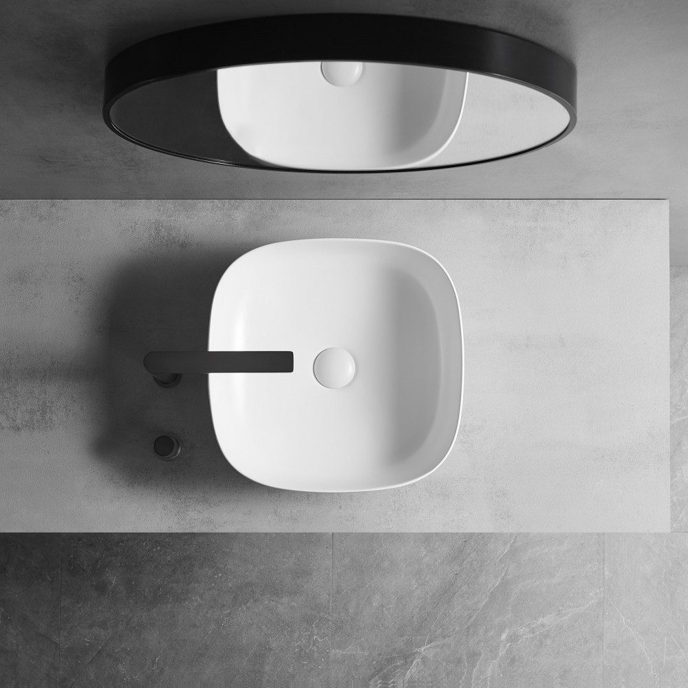 Умывальник накладной ABBER Bequem AC2123, санфарфор, квадратная форма, ширина: 42 см, длина: 42 см, высота: 14 см