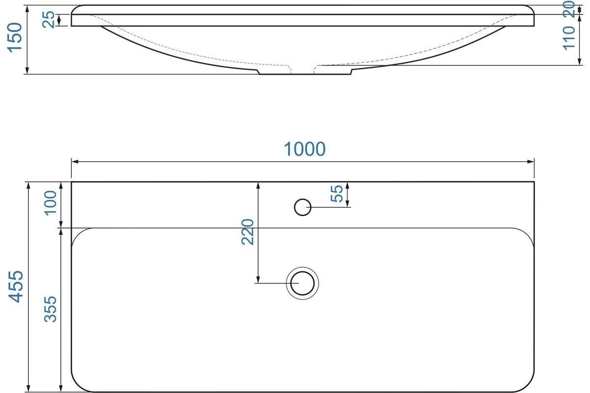 Умывальник Raval Classica Clas.08.100/W/RL 100x45 белый глянец - Ширина: 100 см, Глубина: 45 см, Конструкция: На тумбу, Материал: Искусственный камень, Цвет: Белый
