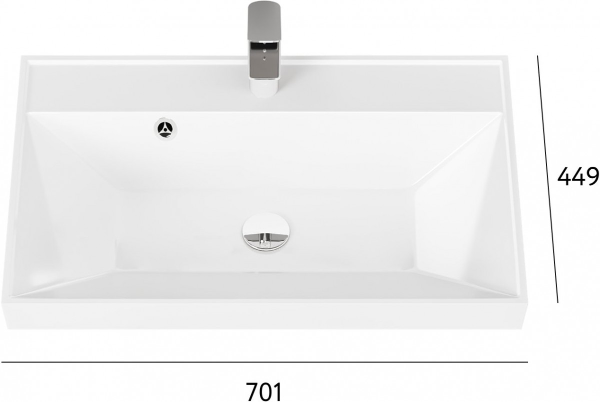 Умывальник Raval Classica Clas.08.70/W/RL 70x45 белый глянец - Ширина: 70 см, Глубина: 45 см, Конструкция: На тумбу, Материал: Искусственный камень, Цвет: Белый