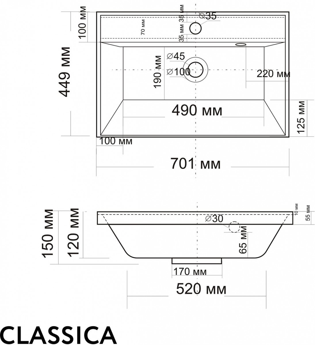 - Отверстие для перелива - нет