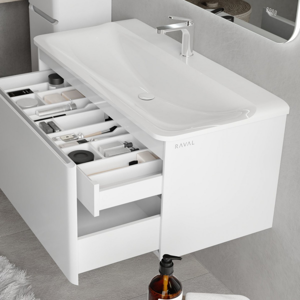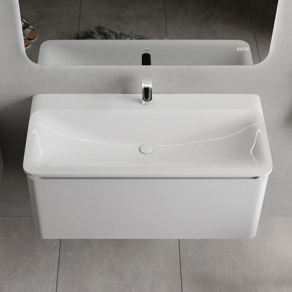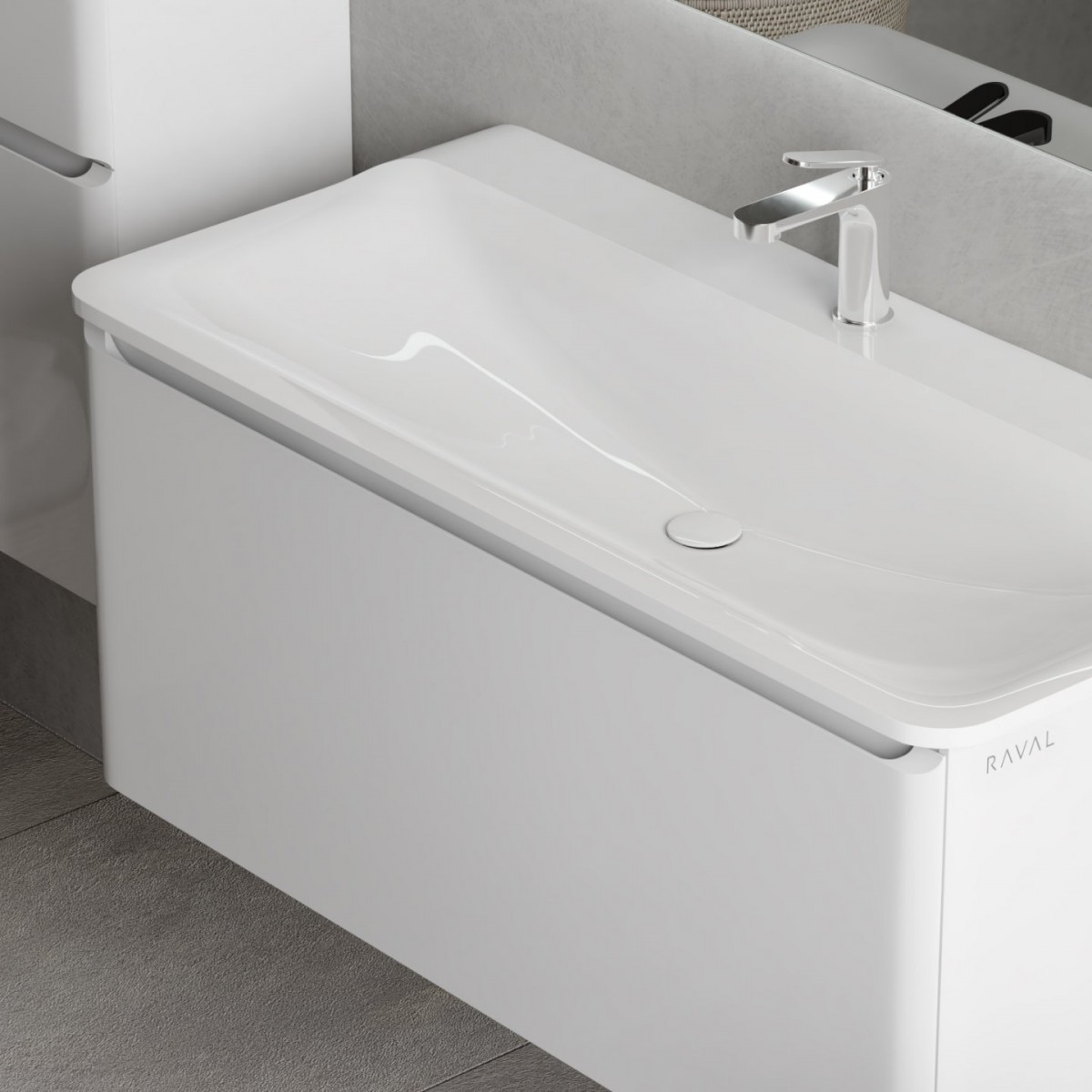 Умывальник Raval Welto 100x46 Wel.08.100/W/RL - Ширина: 100 см, Глубина: 46 см, Конструкция: На тумбу|на стену, Материал: Искусственный камень, Цвет: Белый