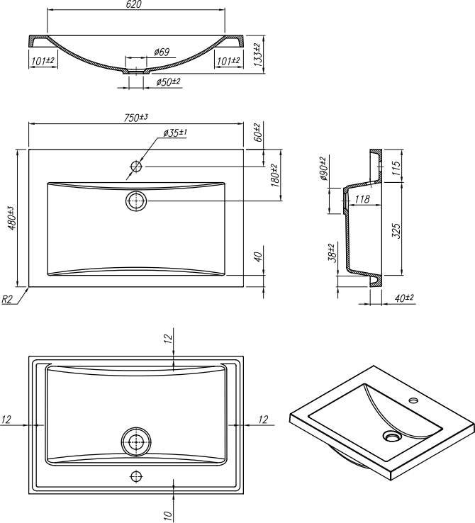 - Отверстие для перелива - нет