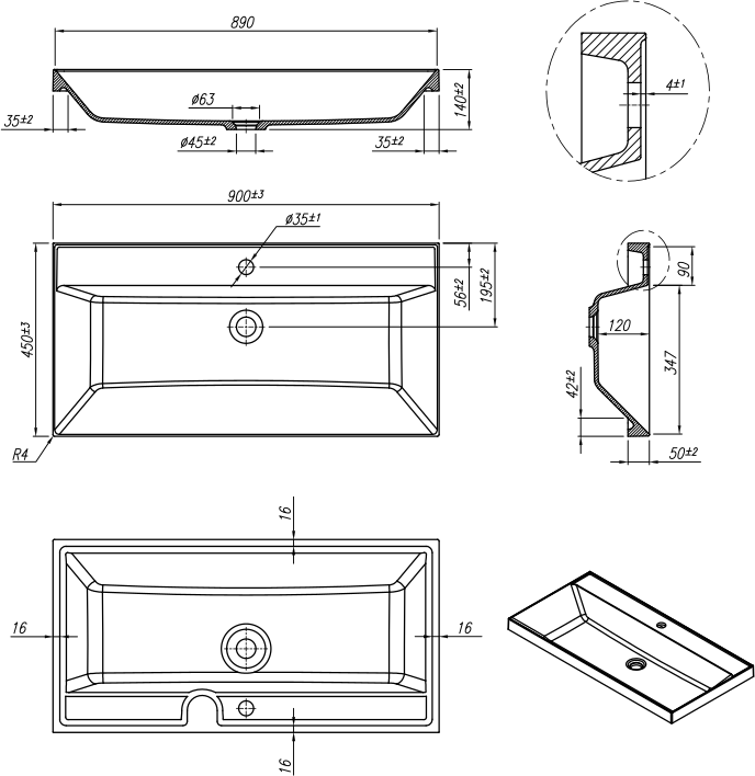- Отверстие для перелива - нет