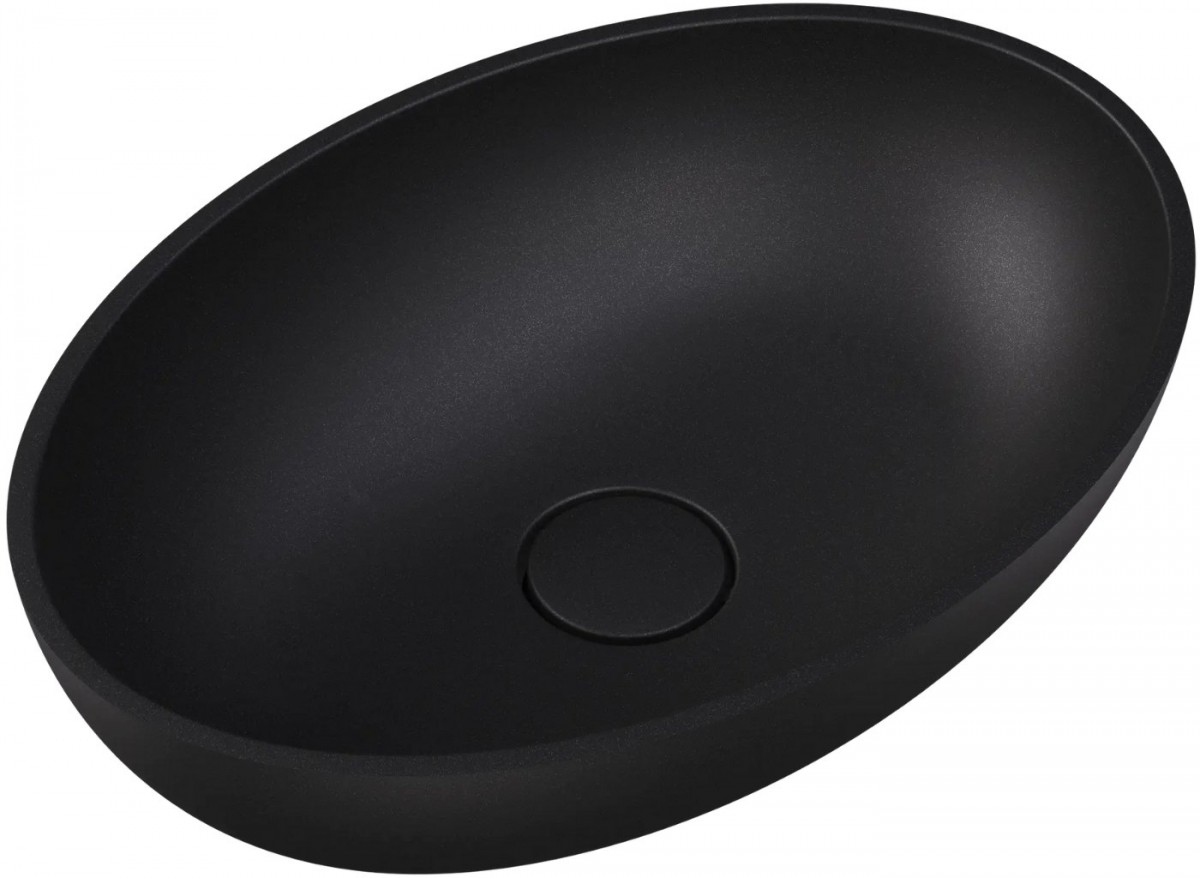 Умывальник Roxen Nimfa Black 50x35 черный - Ширина: 50 см, Глубина: 35 см, Конструкция: На столешницу, Материал: Искусственный камень, Цвет: Чёрный