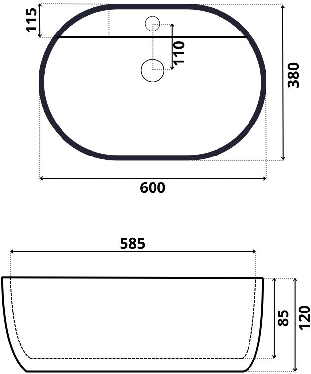 Умывальник Roxen Rio Max 60x38 белый - Ширина: 60 см, Глубина: 38 см, Конструкция: На столешницу, Материал: Фарфор, Цвет: Белый