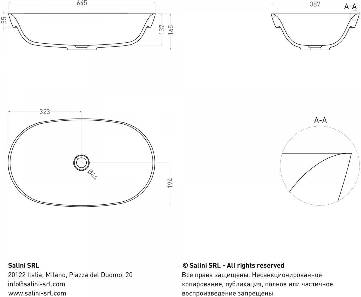 Умывальник Salini Marea 01 S-Stone 1802201M 64,5x38,7 белый матовый - Ширина: 64.5 см, Глубина: 38.7 см, Конструкция: На столешницу, Материал: Искусственный камень, Цвет: Белый