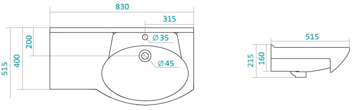 Умывальник Santek Коралл 83 83x51,5 левый - Ширина: 83 см, Глубина: 51.5 см, Конструкция: На тумбу, Материал: Фарфор, Цвет: Белый