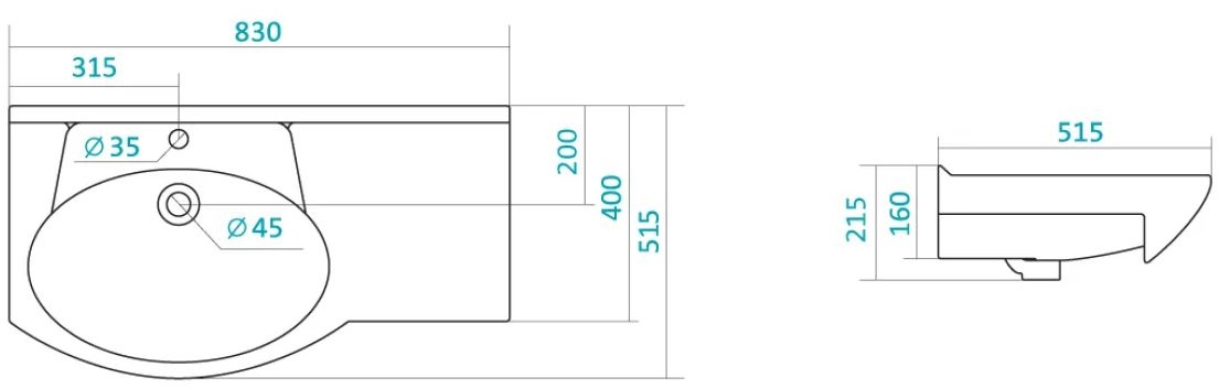 Умывальник Santek Коралл 83 83x51,5 правый