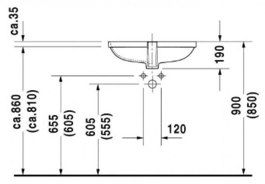 Умывальник встраиваемый Duravit D-Code 0338560000 55x40 с переливом - Ширина: 55 см, Глубина: 43 см, Конструкция: Под столешницу, Материал: Фарфор, Цвет: Белый