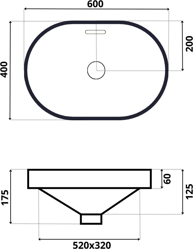 Умывальник встраиваемый Roxen BATT 60x40 серый - Ширина: 60 см, Глубина: 40 см, Конструкция: В столешницу сверху, Материал: Фарфор, Цвет: Серый