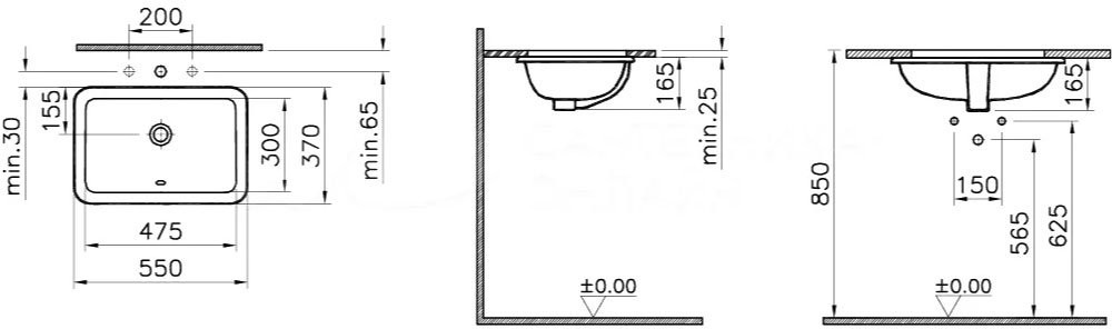 Умывальник встраиваемый Vitra S20 55x37 белый - Ширина: 55 см, Глубина: 37 см, Конструкция: Под столешницу, Материал: Фарфор, Цвет: Белый