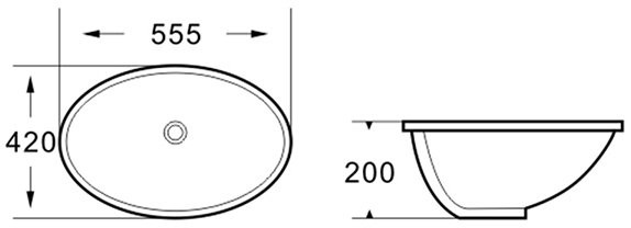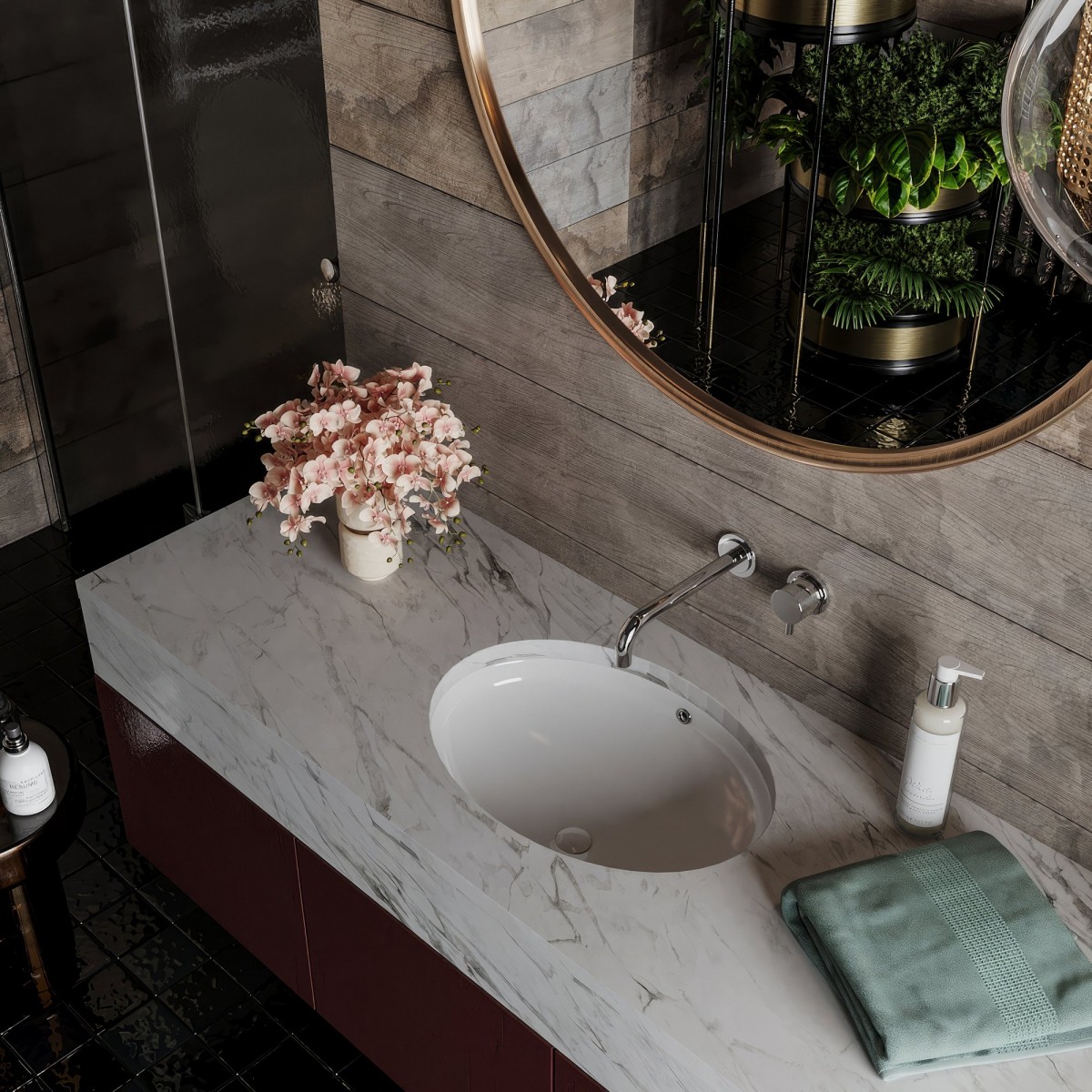 Умывальник встраиваемый Roxen Sopra 55,5x42 белый, монтаж: под столешницу, фарфор