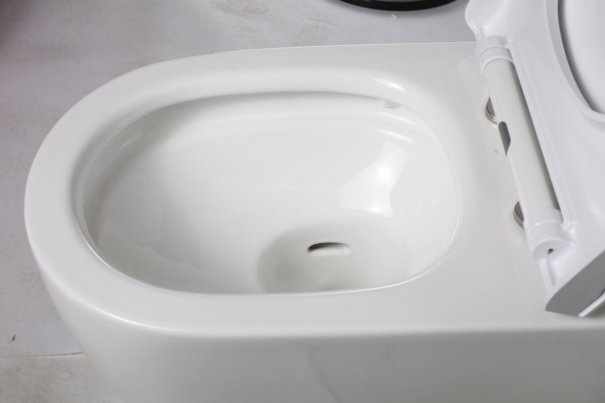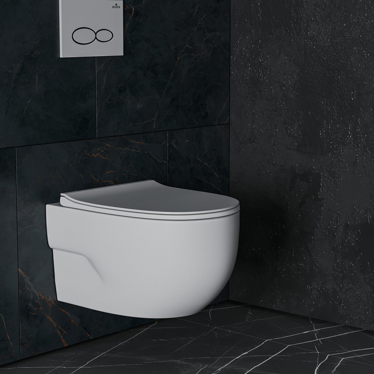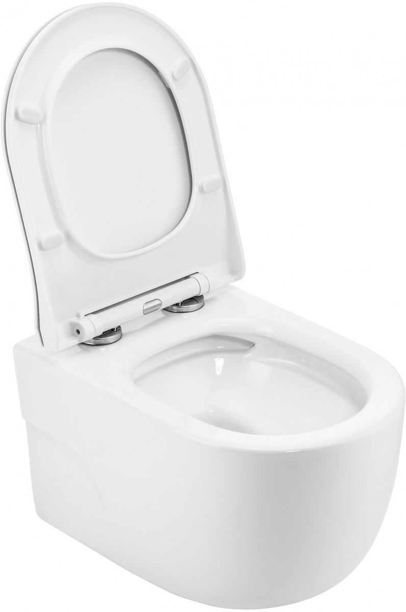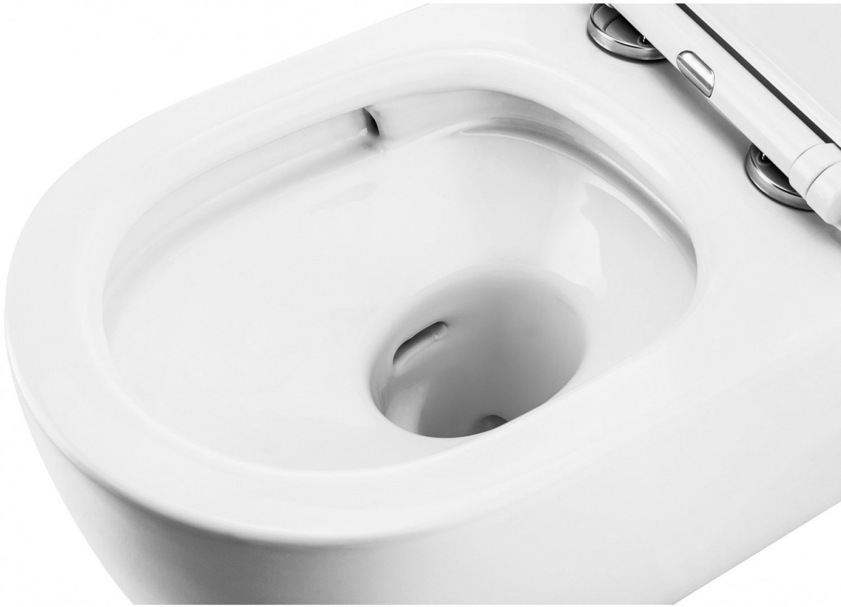 Подвесной унитаз Roxen Porto 530155-01 Rimless Soft Close - стильная модель с удобной округлой безободковой чашей Pro-Rimless, благодаря чему нет труднодоступных зон для уборки. Изготовлен из санитарного фарфора Porcelain, который обеспечивает прочность изделия, белизну, абсолютно гладкую поверхность, отсутствие пор и углублений. Специальное антибактериальное покрытие Ultra Glide обеспечивает легкий уход, гигиеничность и первоначальный внешний вид на долгие годы. Инновационная конструкция чаши унитаза позволяет избежать попадания брызг воды при смыве. Данная модель имеет самую эффективную систему смыва Flash Tornado, при которой струя воды из отверстия в чаше создает эффект водоворота, что позволяет полностью очищать всю внутреннюю поверхность унитаза. Данная система смыва почти бесшумная и дает отличный результат с использованием минимального количества воды. Модель укомплектована тонким быстросъемным сиденьем с крышкой Soft Close (плавное опускание). Установка на инсталляцию.