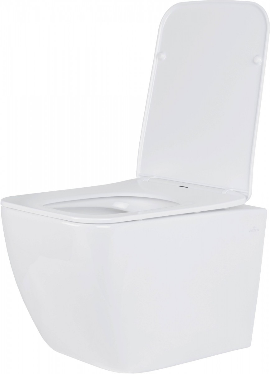 Подвесной унитаз Roxen Cube 530135-01 Rimless Soft Close - стильная модель с удобной безободковой чашей Pro-Rimless, благодаря чему нет труднодоступных зон для уборки. Инновационная конструкция чаши унитаза позволяет избежать попадания брызг воды при смыве. Изготовлен из санитарного фарфора Porcelain, который обеспечивает прочность изделия, белизну, абсолютно гладкую поверхность, отсутствие пор и углублений. Специальное антибактериальное покрытие Ultra Glide обеспечивает легкий уход, гигиеничность и первоначальный внешний вид на долгие годы. Модель укомплектована тонким быстросъемным сиденьем с крышкой Soft Close (плавное опускание). Установка на инсталляцию.
