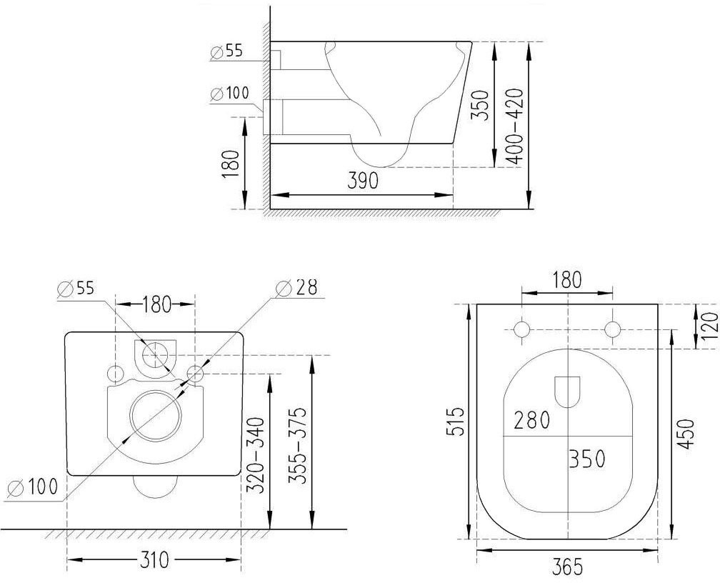 - Подходит для всех типов унитазов (18 см, 23 см)