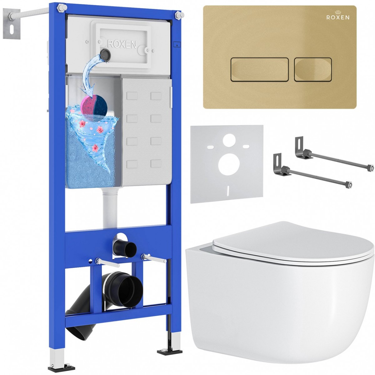 Комплект 6 в 1 Roxen StounFix Dual Fresh 968090 клавиша смыва Caspia 410280GB + унитаз Vortex 530160-01