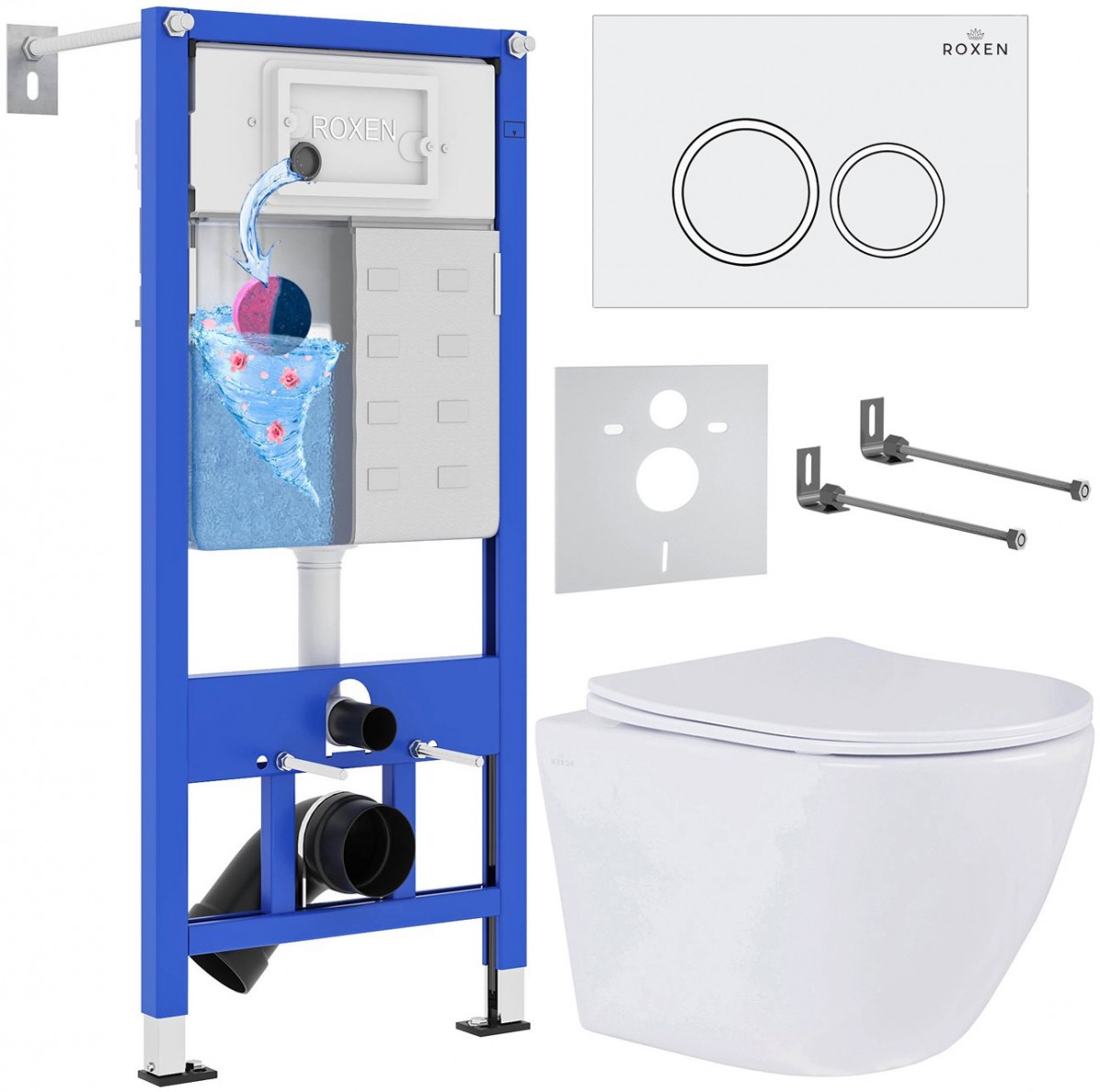 Комплект 6 в 1 Roxen StounFix Dual Fresh 968335 клавиша смыва Santi 410260W белый + Antares Tornado 530205-01 - Ширина: 50 см, Высота: 112 см, Глубина: 12 см, панель смыва в комплекте