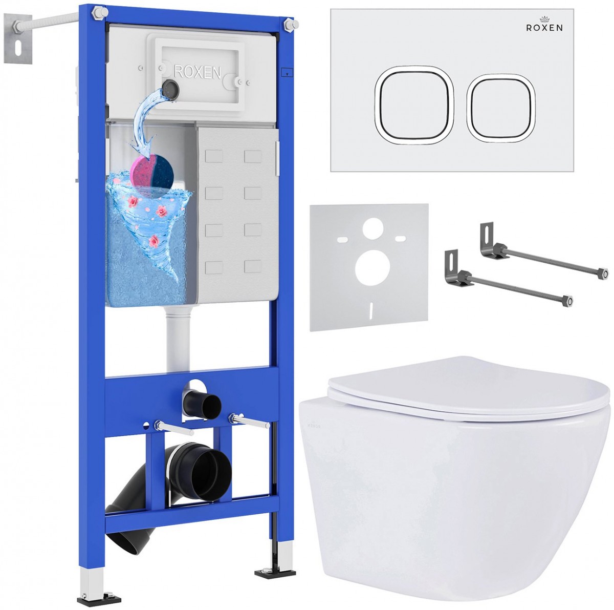 Комплект 6 в 1 Roxen StounFix Dual Fresh 968358 клавиша смыва Santi 410280W + Antares Tornado 530205-01