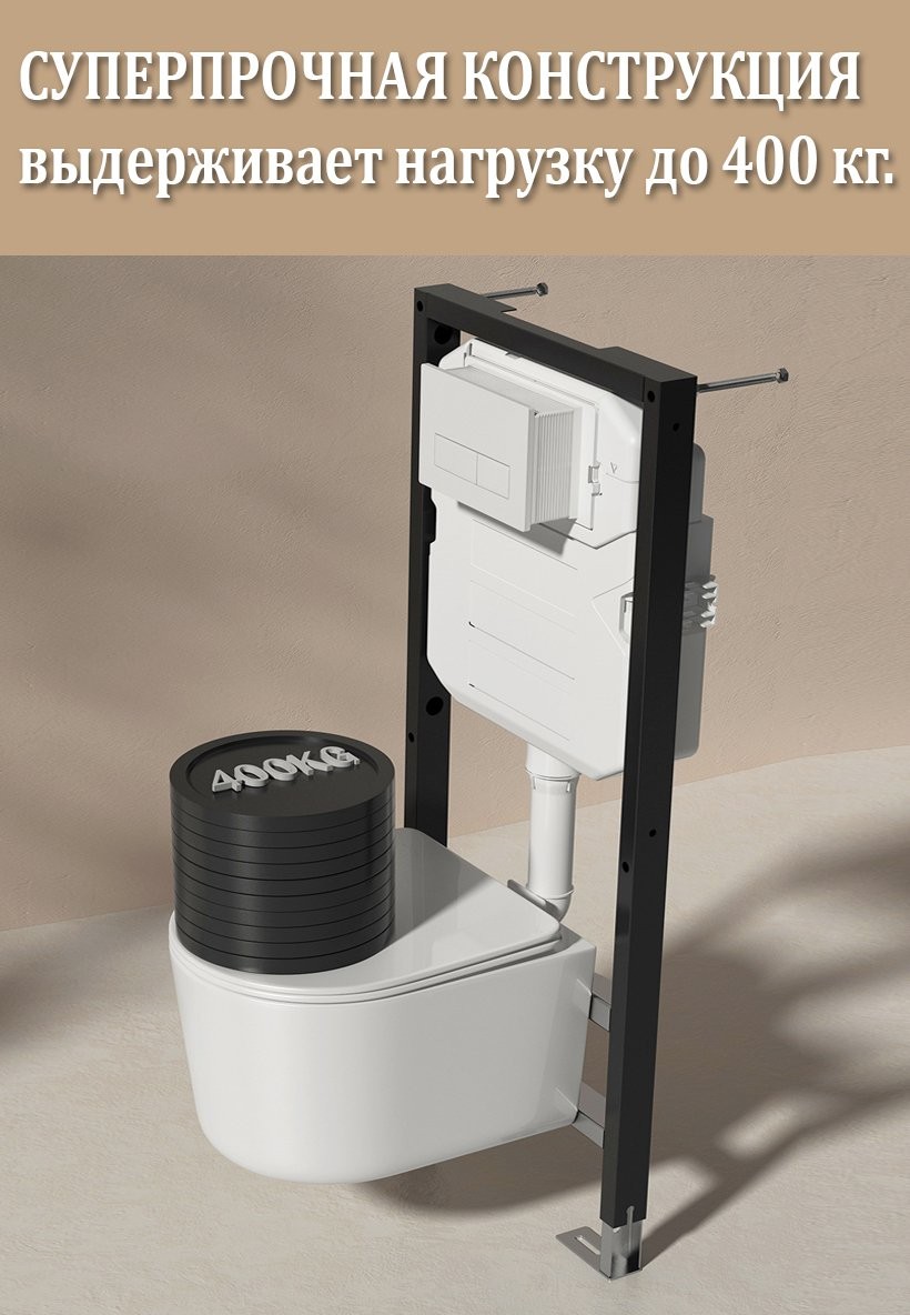 Комплект инсталляции 6 в 1 Roxen StounFix Dual Fresh 906789 с унитазом 530120-01 и клавишей смыва Santi 410260W с аромадозатором - Ширина: 50 см, Высота: 114 см, Глубина: 12 см, панель смыва в комплекте