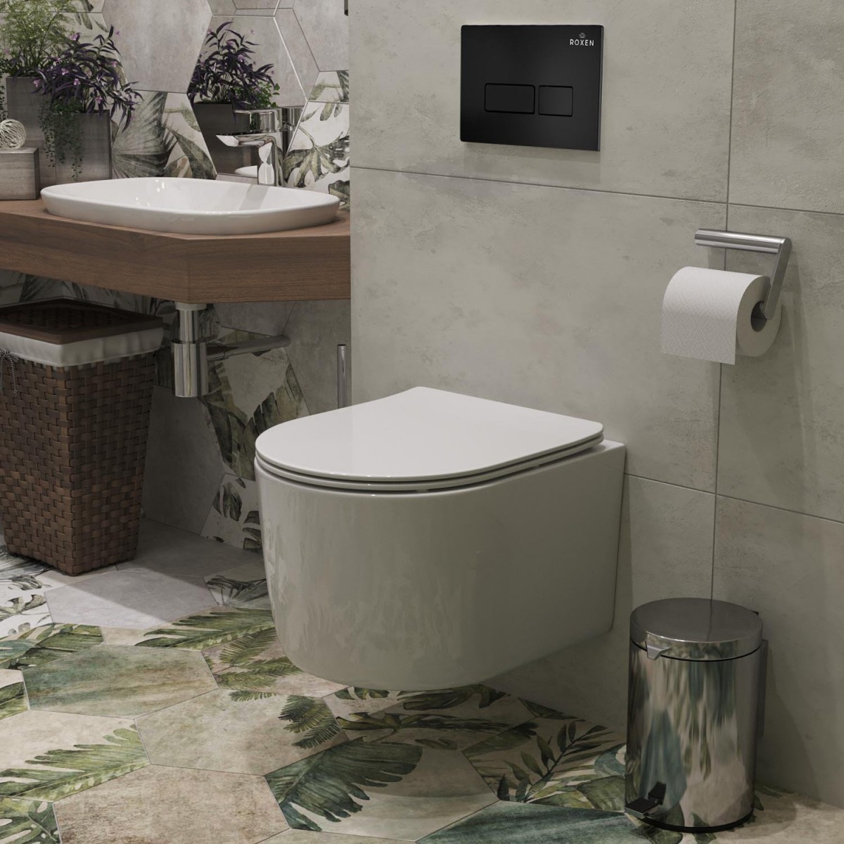 Унитаз подвесной Roxen Simple 530120-01 36,5x45,5 безободковый SoftClose