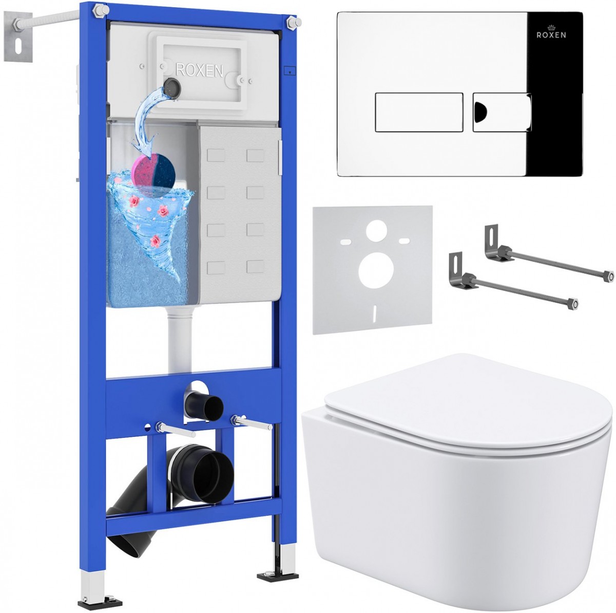 Комплект инсталляции 6 в 1 Roxen StounFix Dual Fresh 932469 с унитазом 530120-01 и клавишей смыва Caspia 410280CH с аромадозатором