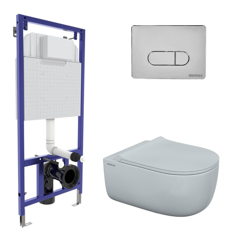 Комплект инсталляции Berges NOVUM 525 с подвесным унитазом EGO XL Rimless + сиденье дюропласт Toma Slim SO + клавиша смыва D3, глянцевый хром