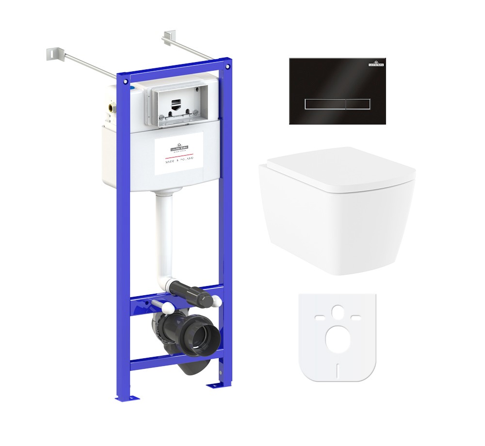 77050214 - Комплект инсталляции и унитаза 6 в 1 Lavinia Boho Relfix Aveo Rimless (безободковая чаша подвесного унитаза Aveo Rimless 3306101R; быстросъемное сиденье микролифт из прочного дюропласта с хромированными металлическими петлями 33290600; комплект крепления для скрытого подвесного монтажа; фигурный ключ для навески и фиксации унитаза; система инсталляции Relfix 38010020; удлиненный комплект креплений; шумоизоляция для подвесной керамики 38050010; клавиша смыва Relfix 3805003B (цвет черный, материал стекло, толщина 4 мм - одно из самых тонких решений на рынке); инструкция по монтажу и эксплуатации; гарантийный талон)