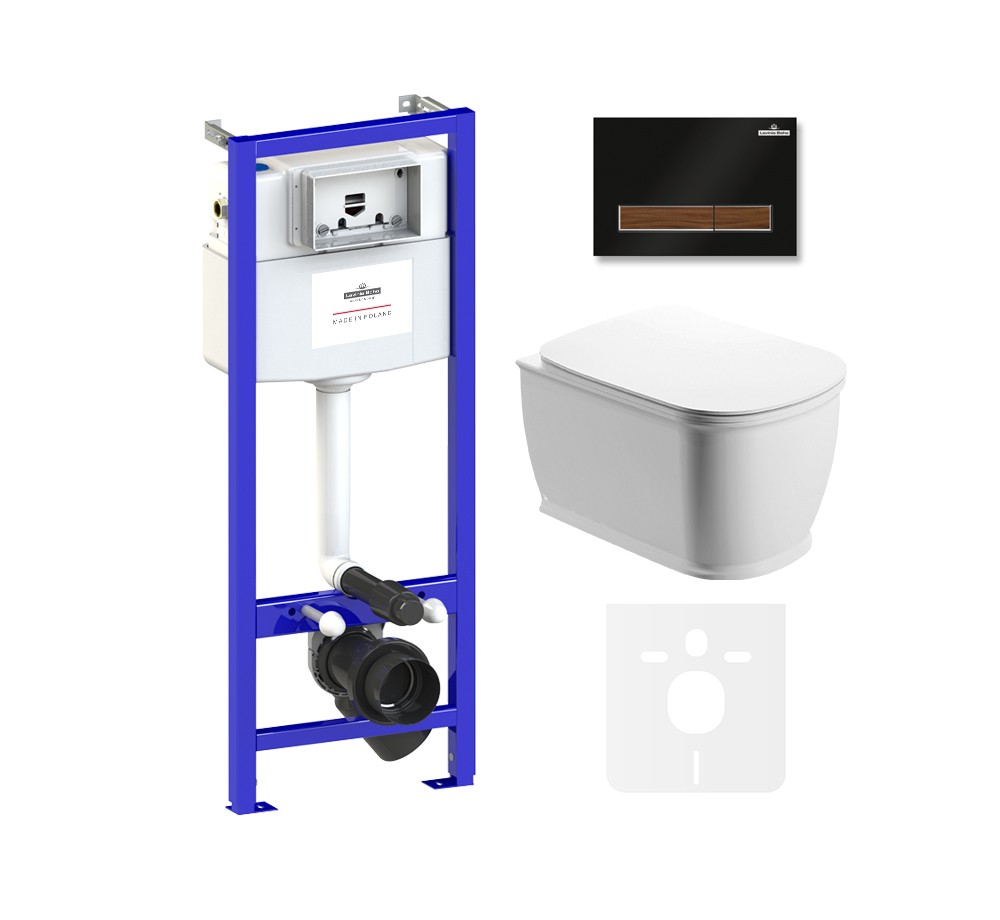 75110005 - Комплект инсталляции и унитаза 6 в 1 Lavinia Boho Relfix Bell Pro Rimless (безободковая чаша подвесного унитаза Bell Pro Rimless 3301101R (цвет белый); быстросъемное сиденье микролифт из прочного дюропласта с хромированными металлическими петлями 33290100; комплект крепления для скрытого подвесного монтажа; фигурный ключ для навески и фиксации унитаза; система инсталляции Relfix 38010010; универсальный комплект креплений; шумоизоляция для подвесной керамики 38050010; клавиша смыва Relfix 38050602 (цвет матовый черный/темное дерево, материал пластик, толщина 13 мм - одно из самых тонких решений на рынке); инструкция по монтажу и эксплуатации; гарантийный талон)