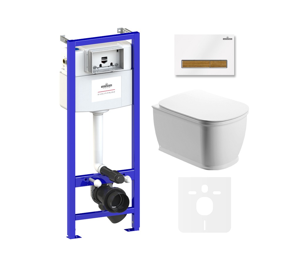 75110006 - Комплект инсталляции и унитаза 6 в 1 Lavinia Boho Relfix Bell Pro Rimless (безободковая чаша подвесного унитаза Bell Pro Rimless 3301101R (цвет белый); быстросъемное сиденье микролифт из прочного дюропласта с хромированными металлическими петлями 33290100; комплект крепления для скрытого подвесного монтажа; фигурный ключ для навески и фиксации унитаза; система инсталляции Relfix 38010010; универсальный комплект креплений; шумоизоляция для подвесной керамики 38050010; клавиша смыва Relfix 38050603 (цвет белый/светлое дерево, материал пластик, толщина 13 мм - одно из самых тонких решений на рынке); инструкция по монтажу и эксплуатации; гарантийный талон)