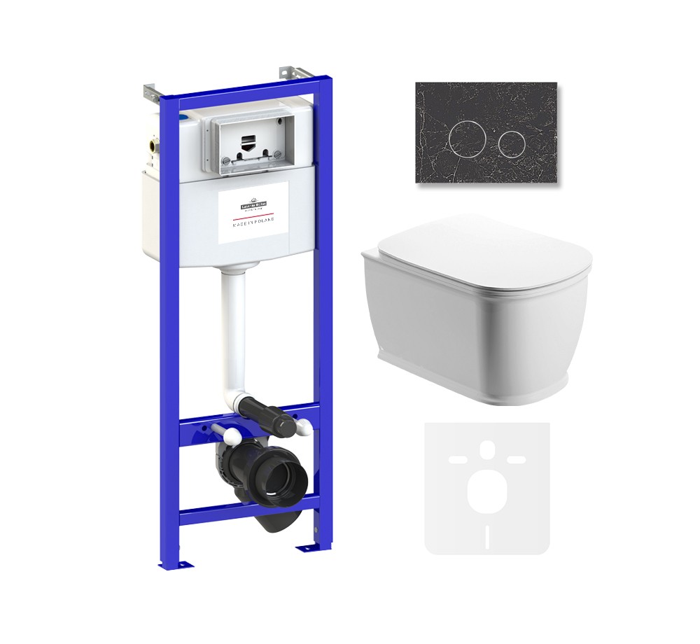 75110015 - Комплект инсталляции и унитаза 6 в 1 Lavinia Boho Relfix Bell Pro Rimless (безободковая чаша подвесного унитаза Bell Pro Rimless 3301101R (цвет белый); быстросъемное сиденье микролифт из прочного дюропласта с хромированными металлическими петлями 33290100; комплект крепления для скрытого подвесного монтажа; фигурный ключ для навески и фиксации унитаза; система инсталляции Relfix 38010010; универсальный комплект креплений; шумоизоляция для подвесной керамики 38050010; клавиша смыва Relfix 38050902 (цвет greek black, материал камень, толщина 4 мм - одно из самых тонких решений на рынке); инструкция по монтажу и эксплуатации; гарантийный талон)