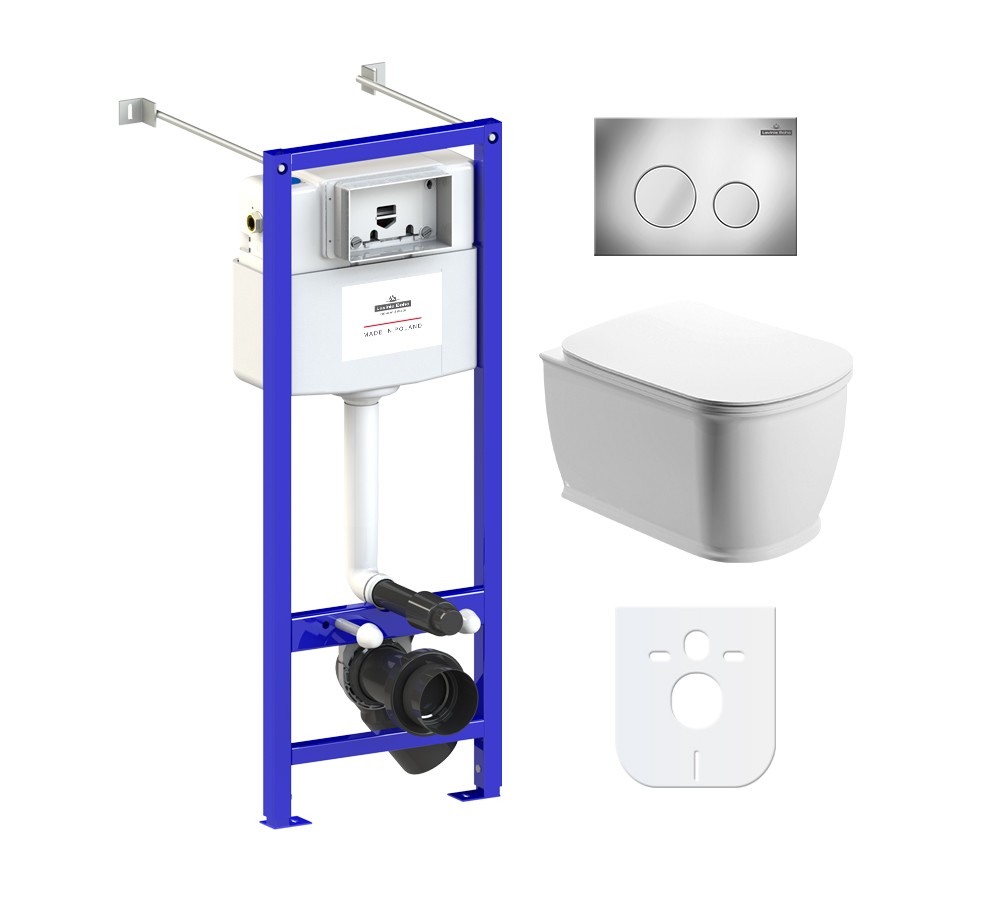 77050126 - Комплект инсталляции и унитаза 6 в 1 Lavinia Boho Relfix Bell Pro Rimless (система инсталляции Relfix 38010020; удлиненный комплект креплений к стене (включено в артикул 38010020); звукоизолирующая пластина для унитаза (включена в артикул 38010020); клавиша смыва Relfix 3805002C; подвесной унитаз Bell Pro Rimless 3301002R; быстросъемное дюропластовое сиденье с медленно опускающейся крышкой и хромированными металлическими петлями (включено в артикул 3301002R)