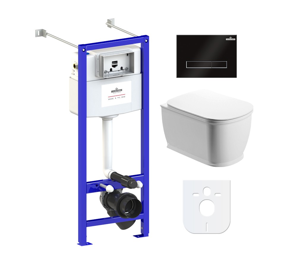 77050130 - Комплект инсталляции и унитаза 6 в 1 Lavinia Boho Relfix Bell Pro Rimless (система инсталляции Relfix 38010020; удлиненный комплект креплений к стене (включено в артикул 38010020); звукоизолирующая пластина для унитаза (включена в артикул 38010020); клавиша смыва Relfix 3805003B; подвесной унитаз Bell Pro Rimless 3301002R; быстросъемное дюропластовое сиденье с медленно опускающейся крышкой и хромированными металлическими петлями (включено в артикул 3301002R)