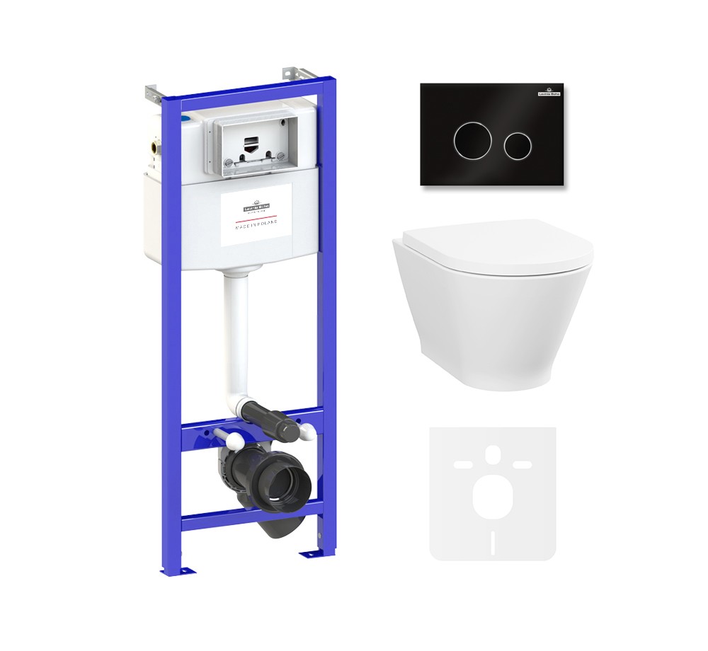 87561070 - Комплект инсталляции и унитаза 6 в 1 Lavinia Boho Relfix Elegant Rimless (безободковая чаша подвесного унитаза Elegant Rimless 3308101R; быстросъемное сиденье микролифт из прочного дюропласта с хромированными металлическими петлями 33290700; комплект крепления для скрытого подвесного монтажа; фигурный ключ для навески и фиксации унитаза; система инсталляции Relfix 38010010; универсальный комплект креплений; шумоизоляция для подвесной керамики 38050010; клавиша смыва Relfix 3805004B (цвет черный, материал стекло, толщина 4 мм - одно из самых тонких решений на рынке); инструкция по монтажу и эксплуатации; гарантийный талон)