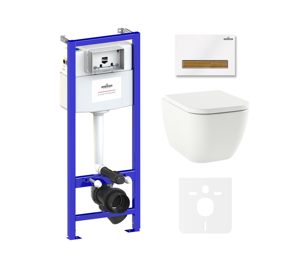 75110108 - Комплект инсталляции и унитаза 6 в 1 Lavinia Boho Relfix One Rimless (безободковая чаша подвесного унитаза One Rimless 3302103R; быстросъемное сиденье микролифт из прочного дюропласта с хромированными металлическими петлями 33290200; комплект крепления для скрытого подвесного монтажа; фигурный ключ для навески и фиксации унитаза; система инсталляции Relfix 38010010; универсальный комплект креплений; шумоизоляция для подвесной керамики 38050010; клавиша смыва Relfix 38050603 (цвет белый/светлое дерево, материал пластик, толщина 13 мм - одно из самых тонких решений на рынке); инструкция по монтажу и эксплуатации; гарантийный талон)