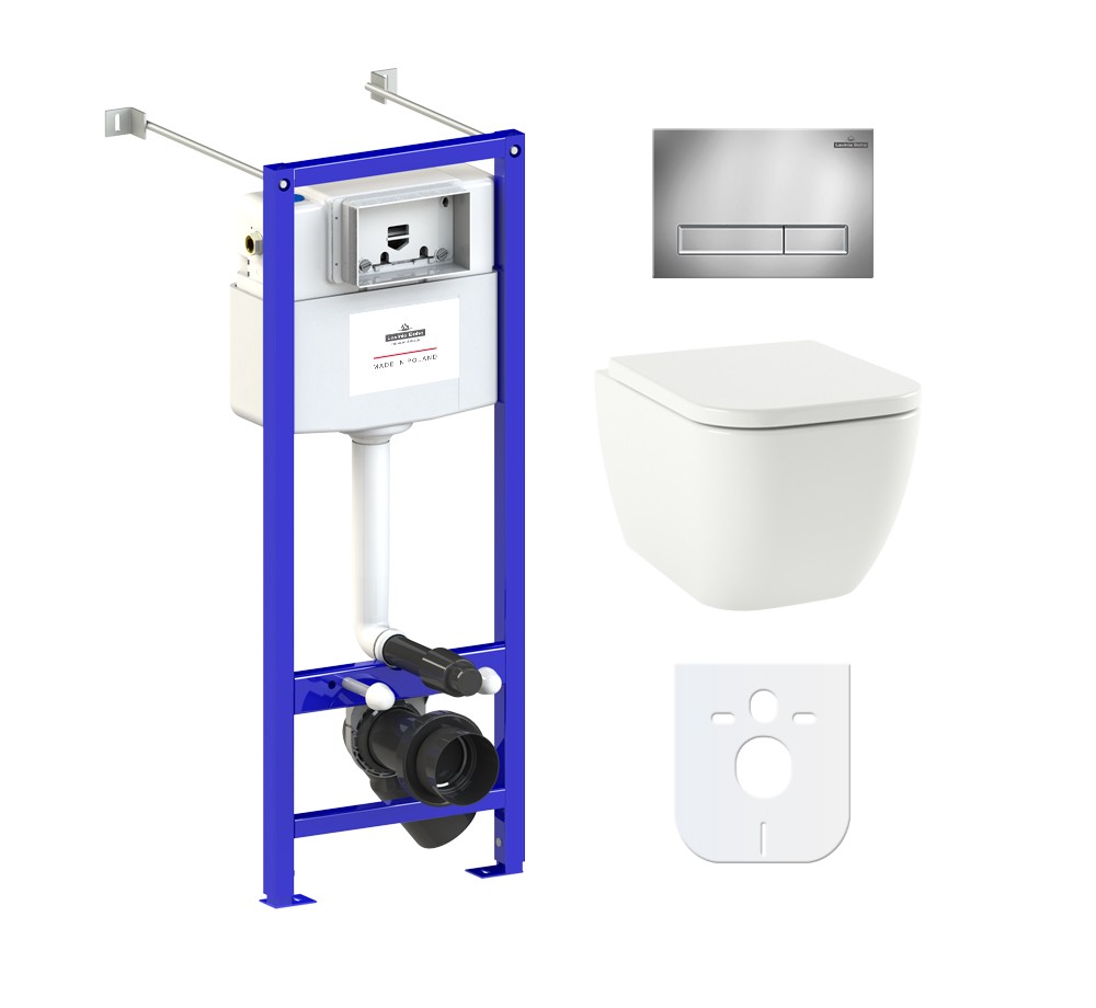 77050158 - Комплект инсталляции и унитаза 6 в 1 Lavinia Boho Relfix One Rimless (система инсталляции Relfix 38010020; удлиненный комплект креплений к стене (включено в артикул 38010020); звукоизолирующая пластина для унитаза (включена в артикул 38010020); клавиша смыва Relfix 3805001C; подвесной унитаз One Rimless 3302004R; быстросъемное дюропластовое сиденье с медленно опускающейся крышкой и хромированными металлическими петлями (включено в артикул 3302004R).