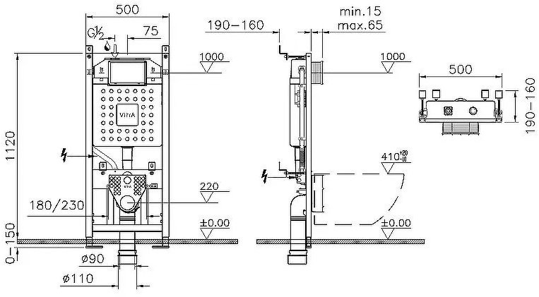 Комплект инсталляции с унитазом Vitra S40 9860B003-7200 - Ширина: 50 см, Высота: 112 см, Глубина: 19 см, панель смыва в комплекте