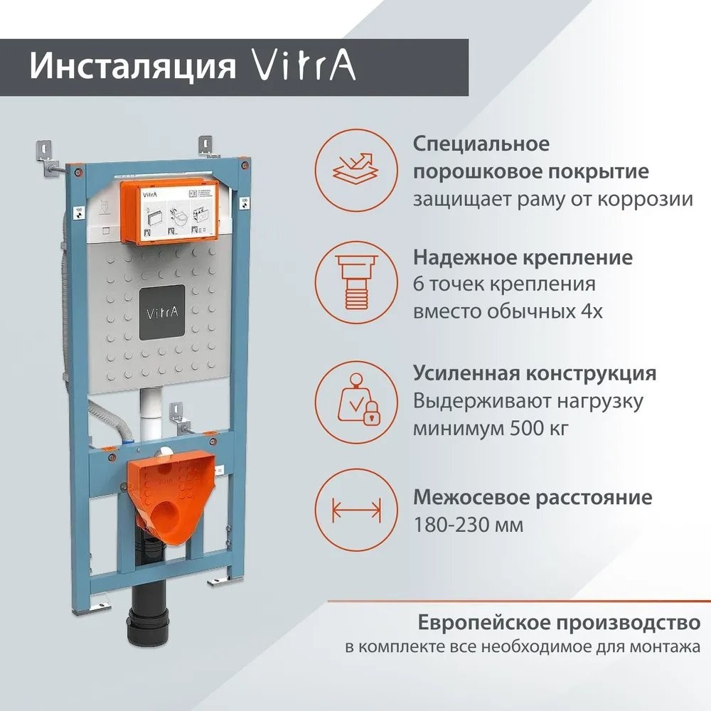 К омплект инсталляции Vitra S40 9860B003-7200 c кнопкой смыва и подвесным унитазом - комплект, который прослужит долго благодаря качеству каждого изделия.