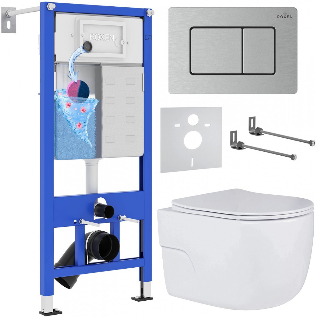 Комплект инсталляция Roxen StounFix Dual Fresh 6 в 1 968445 с унитазом Porto 530155-01 и клавишей смыва Steel 420280S сатин
