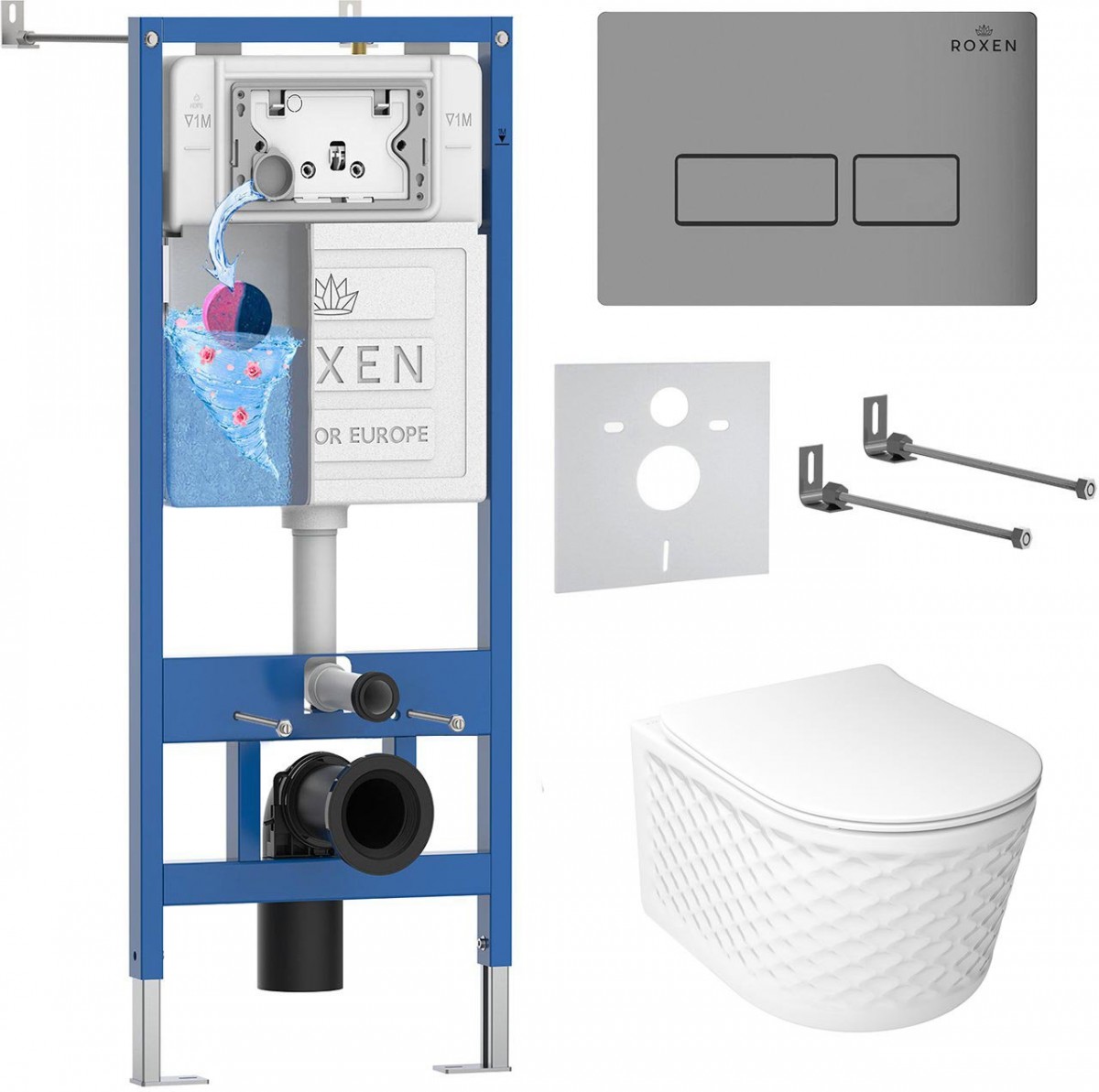 Комплект инсталляция Roxen StounFix Dual Fresh 979003 с унитазом Vine Tornado и клавишей смыва Caspia 410280M