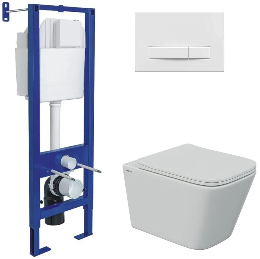 Комплект унитаз Berges FLOE S Rimless + инсталляция Berges Atom Line + клавиша смыва белая