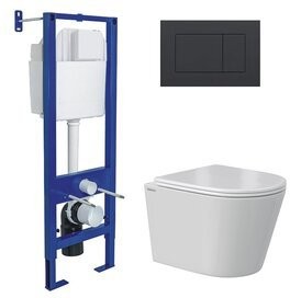 Комплект унитаз Berges VITA Rimless + инсталляция Berges Atom + сидение дюропласт + клавиша смыва Soft Touch черная