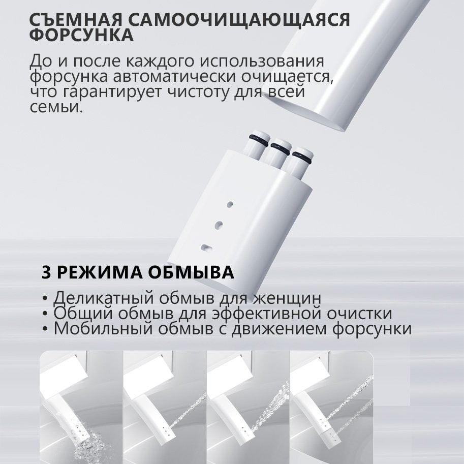 - Режимы обмыва: общий, женский, мобильный, массаж