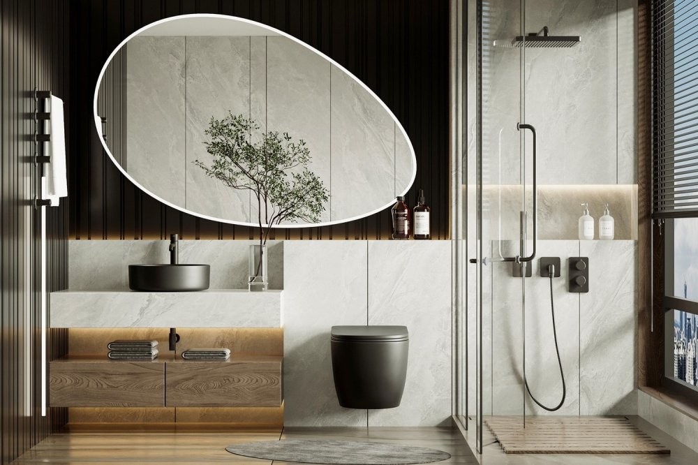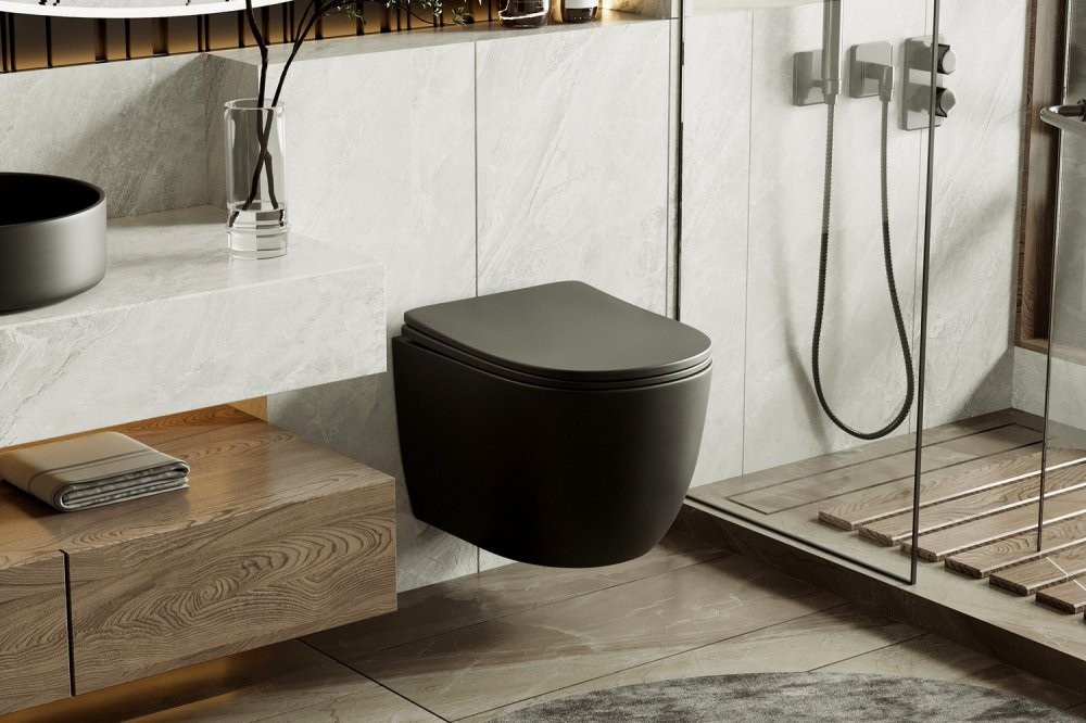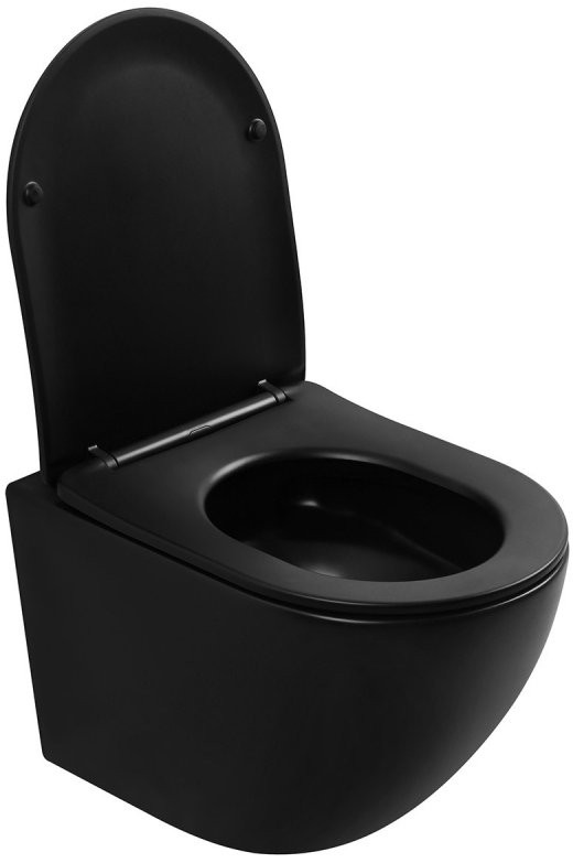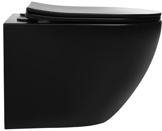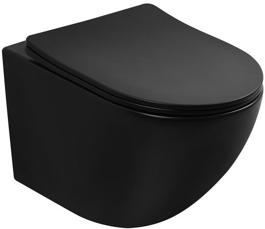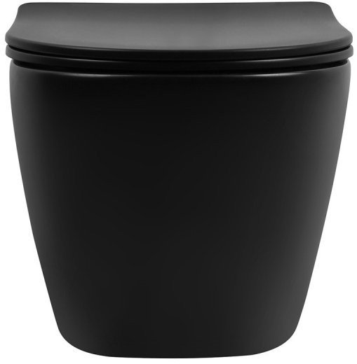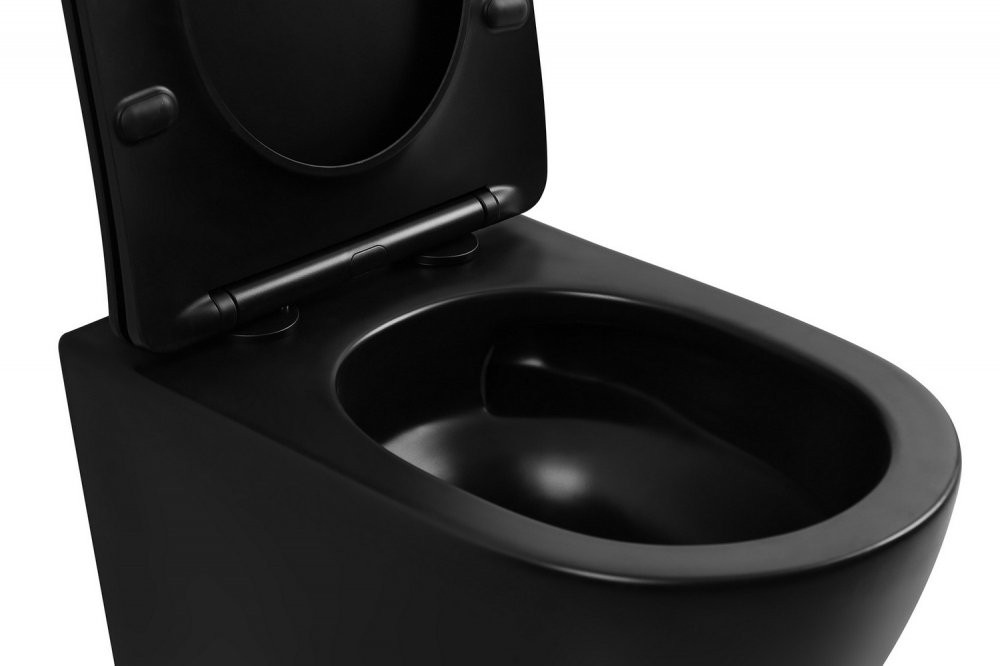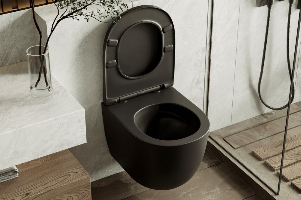 Унитаз подвесной Abber BEQUEM AC1100TMB 35,5x49 безободковый черный матовый с сиденьем SoftClose, смыв торнадо Длина: 49 см, Ширина: 35.5 см, Монтаж: Подвесной, Материал: Фарфор, Подвод: Скрытый