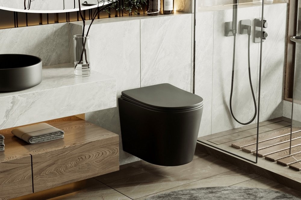 Унитаз подвесной Abber BEQUEM AC1102TMB 35,5x49 SoftClose черный матовый (смыв торнадо) Длина: 49 см, Ширина: 35.5 см, Монтаж: Подвесной, Материал: Фаянс, Подвод: Скрытый