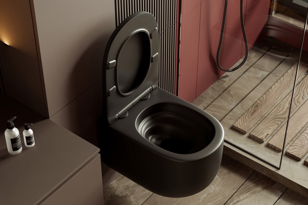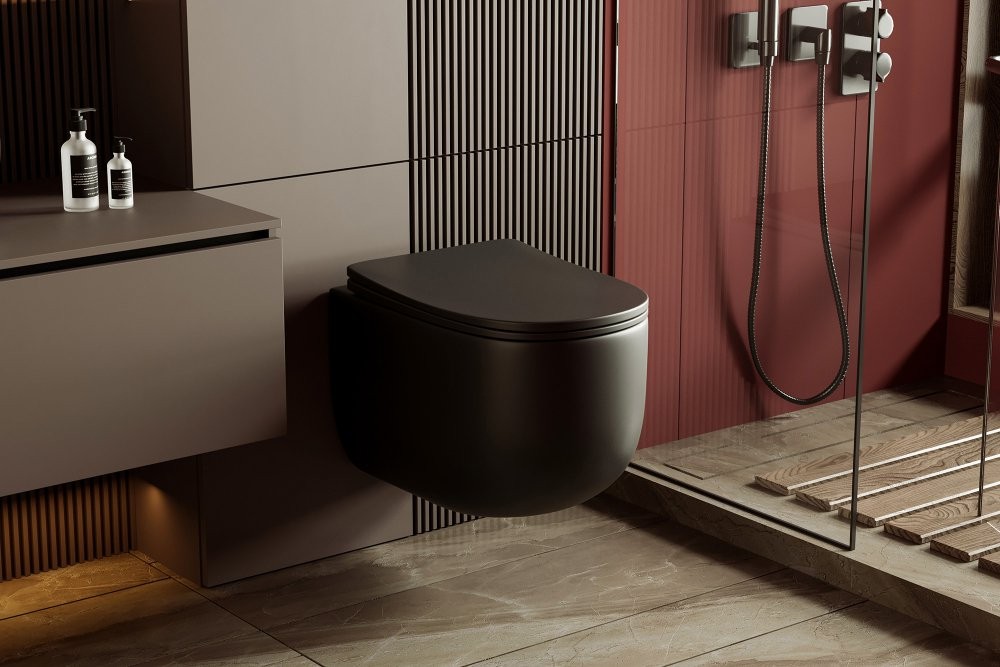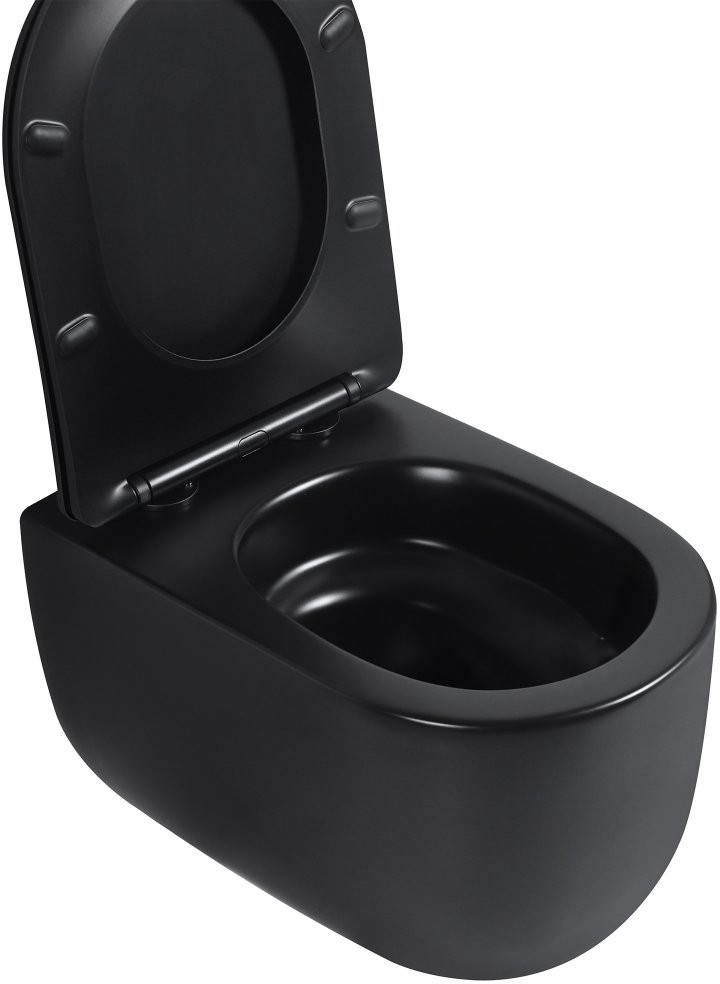 Унитаз подвесной Abber Bequem AC1104TMB 36x53 безободковый SoftClose черный матовый (смыв торнадо) Длина: 53 см, Ширина: 36 см, Монтаж: Подвесной, Материал: Фарфор, Подвод: Скрытый