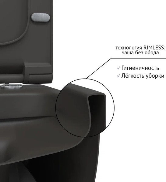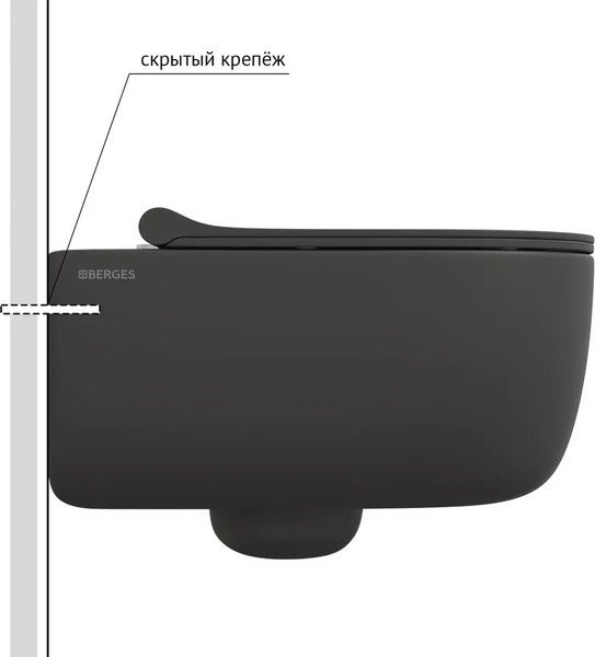 Унитаз подвесной Berges EGO XL Rimless 080218 36x54 сиденье Duroplast, микролифт, матовый антрацит