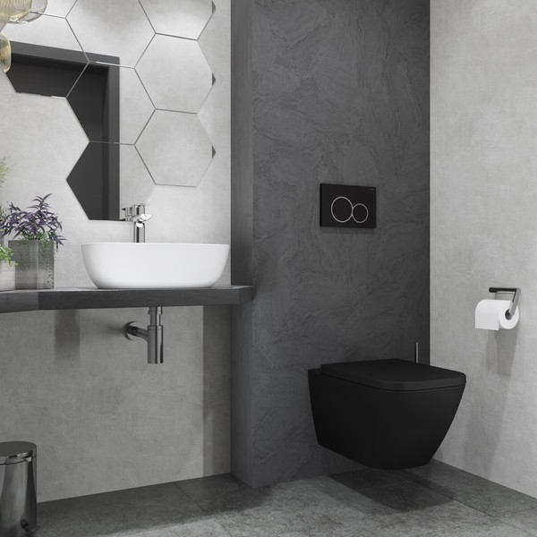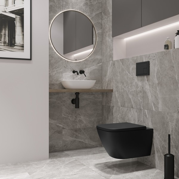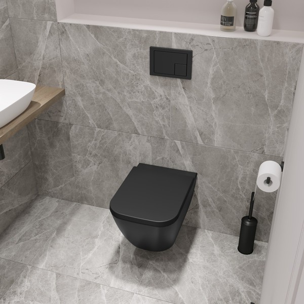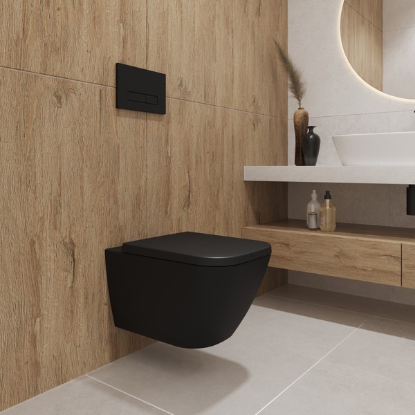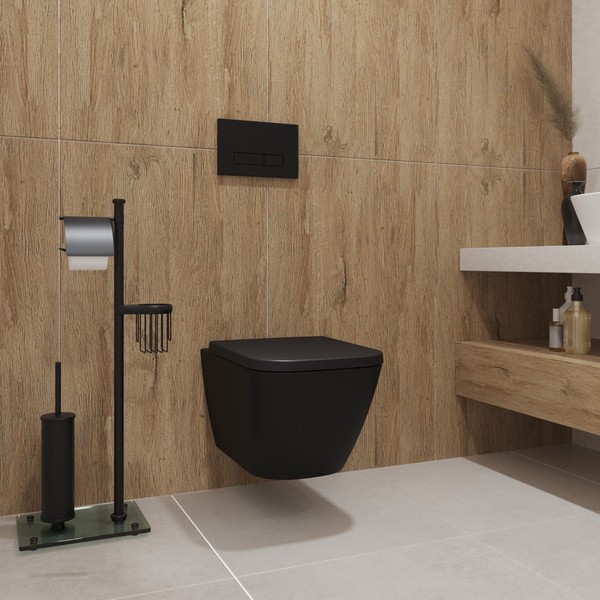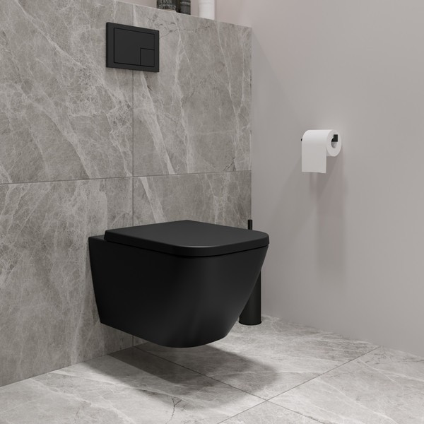 Подвесной унитаз из коллекции Nuremberg представляет собой пример продуманной сантехники, где форма следует за функцией. Прямоугольное исполнение чаши придает лаконичность интерьеру ванной комнаты, а черный цвет фарфора добавляет пространству графичности и выразительности. Материалом для чаши служит прочный фарфор, сохраняющий первоначальный вид долгие годы.