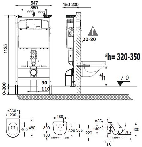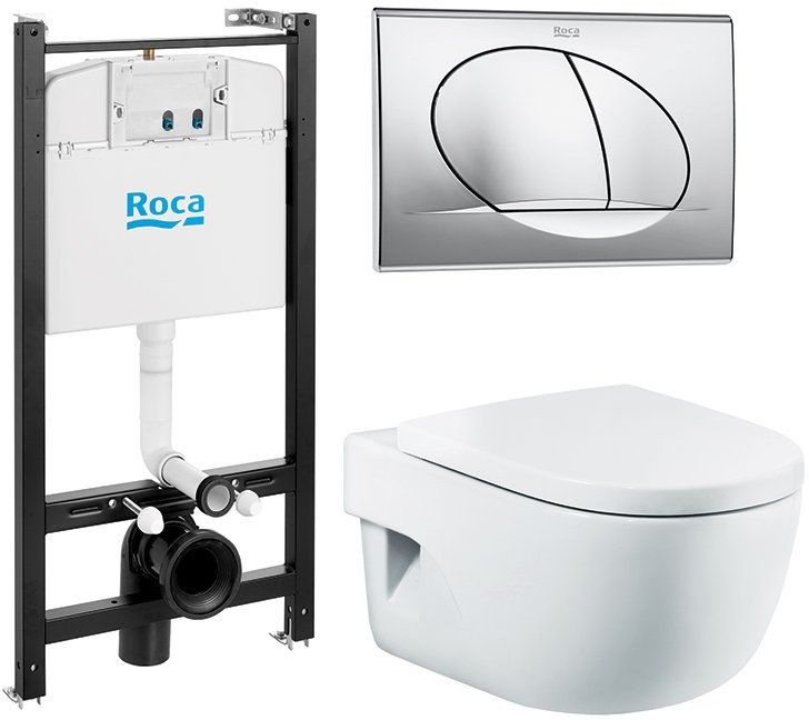 Унитаз подвесной Roca Meridian с крышкой + инсталляция с клавишей смыва, белая (893104110) - Ширина: 54.7 см, Высота: 112.5 см, Глубина: 15-20 см, панель смыва в комплекте