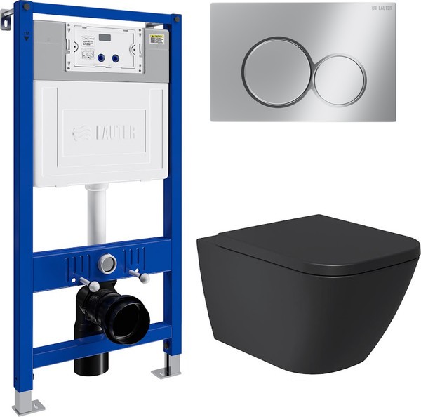 Унитаз подвесной с инсталляцией Lauter Nuremberg 21811B + 21901001 (черный, с кнопкой 219701E хром)